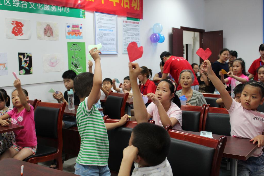 第一阶段为手工折爱心卡纸,宣讲团成员认真教学,小朋友们积极参与,共同完成了爱心卡纸的制作。制作完成后,小朋友们将自己的爱心折纸送给了宣讲团成员并且邀请他们一起完成了后面的废品利用手工创作。无论是矿泉水瓶、废纸、还是用过的一次性纸杯都得到了充分的利用,跃然在小朋友们手上的都是一个个精美的手工艺品。以倡导生态文明保护环境为理念的“跟我学手工”活动得到了社区家长及小朋友们的广泛好评。