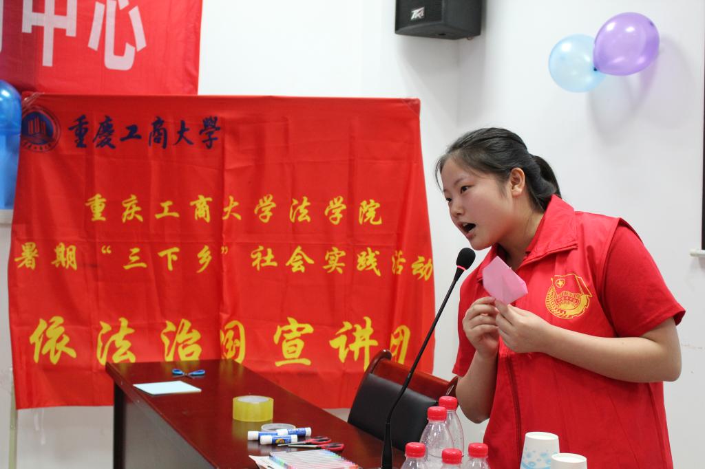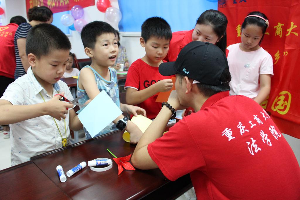 7月24日上午,太阳集团tyc234cc法学院2018年暑期“三下乡”社会实践依法治国宣讲团在九龙坡区石桥铺街道老顶坡社区开展了暑期嘉年华之“跟我学手工”活动。通过引入《环境法》向社区小朋友们讲述保护环境的重要性,通过现场提问、传授保护环境知识等方式,使小朋友们投入废品利用手工活动中,树立环境保护意识。