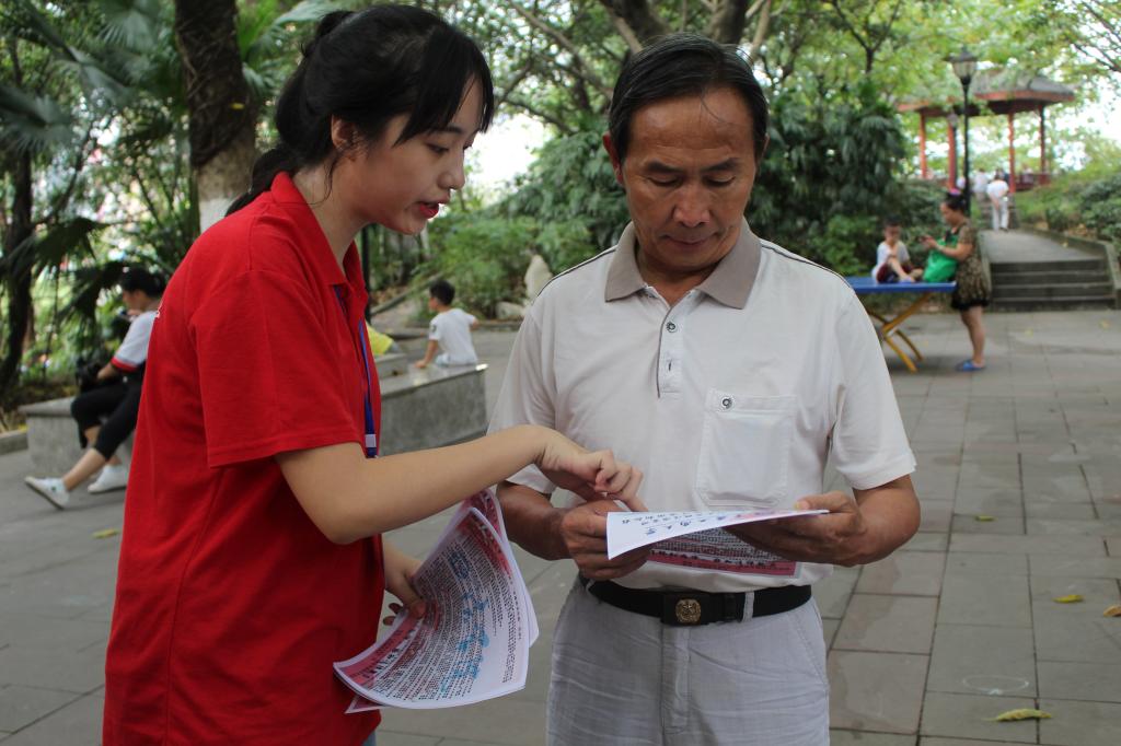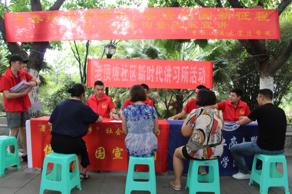 在进行法律义务咨询的同时,政策宣讲小组也走进了当地社区,向在场居民发放了主题为“青春建功新时代,依法治国新征程”的宣传单,重点向他们宣讲了习近平总书记关于“全面依法治国”的重要论述以及国家现行的法律政策和居民关心的法律常识。