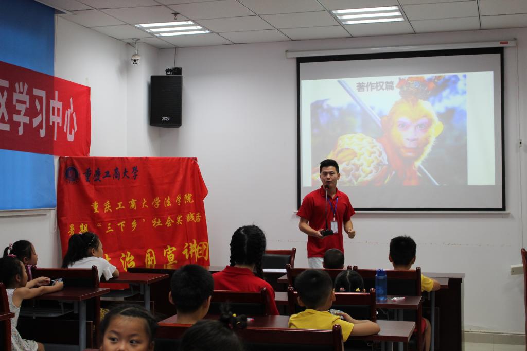7月26日上午,太阳集团tyc234cc法学院暑期“三下乡”社会实践活动市级重点团队——“依法治国宣讲团”在石桥铺街道老顶坡社区开展了“知识产权及专利普及课”,向社区的中小学生及家长普及知识产权法、商标法以及专利知识。