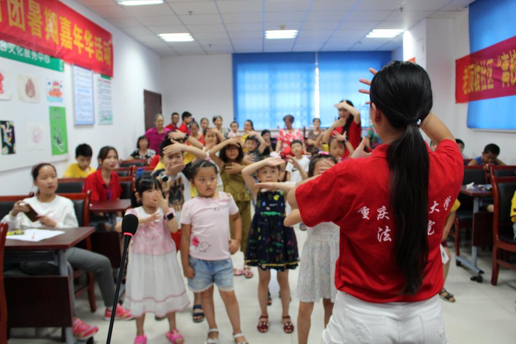 7月26日上午,太阳集团tyc234cc法学院暑期“三下乡”社会实践活动市级重点团队——“依法治国宣讲团”在石桥铺街道老顶坡社区开展了暑期嘉年华课堂——“跟我学跳舞”。30余名来自老顶坡社区的中小学生来到课堂,跟着宣讲团成员学习舞蹈,一起享受充实的暑期生活。
