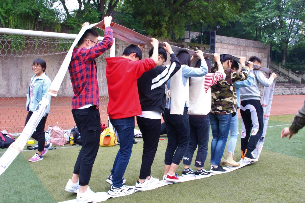 素拓活动井然有序,围绕着“福尔摩斯——认识你我他”“疯狂的设计——团结你我他”“无敌风火轮——创建优良团队”“接力大战——团队中的我”等活动进行了生动而有趣的拓展。活动的趣味性让在场的每一位同学乐在其中,在活动过程中不时地穿插一些总结,这让同学们真正体会到了其中所蕴含的“团队协作、高效率完成工作”的道理。