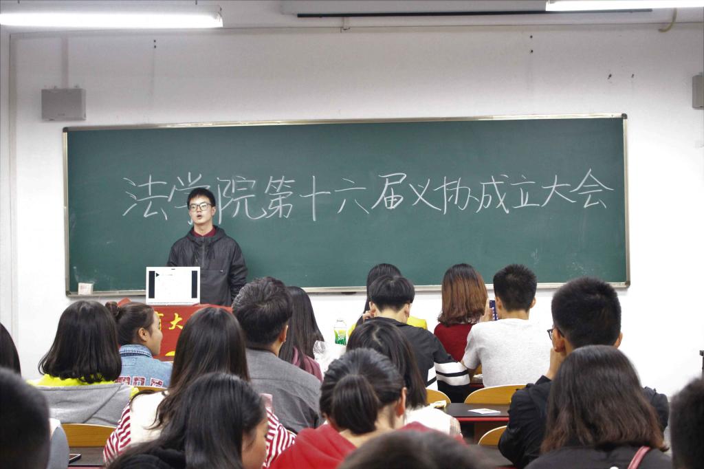 2018年10月12日下午2点,法学院律荫源第十六届义协成立大会于江北校区逸智楼204隆重举行,此次大会由协会组织部部长杨嘉豪主持。第十六届义协全体成员参加了本次会议。同时,此次大会将新成员素拓活动安排在大会结束后进行。