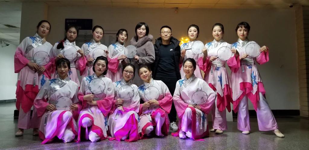 主持人宣布比赛开始,现场的气氛立刻活跃了起来,各代表队依次上场。有的学院选择了优美的民族舞,有的学院则表演了流行的现代舞。而我院则选择古风歌手刘珂矣演唱的一首《半壶纱》作为背景音乐,飘逸流畅的旋律、清雅从容的弹唱,无不蕴藏着一股超凡脱尘的净心能量。随着古典柔美的旋律响起,队员们从一侧帷幕奔出,汇聚在舞台中央,嵌着音乐的节拍缓缓起舞,深情的表情,曼妙的身姿,无不书写着属于她们的青春活力和时代传奇。一时间全场都沉浸在这绝美的意境中,最终也博得了在场观众们一致的掌声。表演完毕,林璐副书记与罗观老师来到后台同队员们合影留念。最终,经过评委老师们严谨的评分过后,决出了进入决赛的12支代表队,我院首次参赛便成功杀入决赛,可喜可贺。