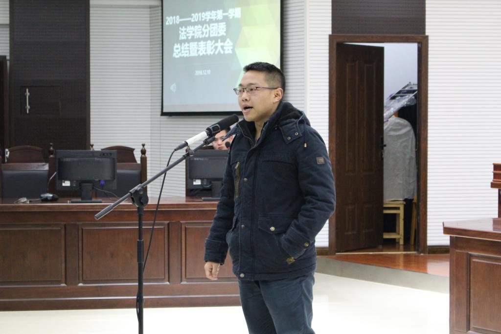 12月10日下午5时,法学院分团委2018年总结暨表彰大会在慧智楼模拟法庭隆重举行。分团委书记罗观老师、分团委工作小组、学生会、义工志愿者协会、辩论队以及律动青年法学社参加本次大会。大会由分团委副书记邓梓涵主持。