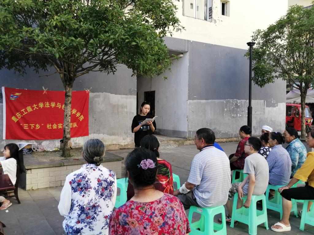 在社区工作人员的协助下,调研团还针对社区居民开展了脱贫攻坚宣讲会和《民法典》咨询会。队员们从“两不愁三保障”“五个一批”等方面为当地居民带去了关于脱贫攻坚政策的讲解。让他们能在社区基层干部施行具体脱贫措施的同时,了解、熟悉脱贫攻坚在当地施行的具体政策内容。同时,针对居民们关心的社会热点问题以及对于《民法典》的疑惑进行了法条解读和法律咨询。