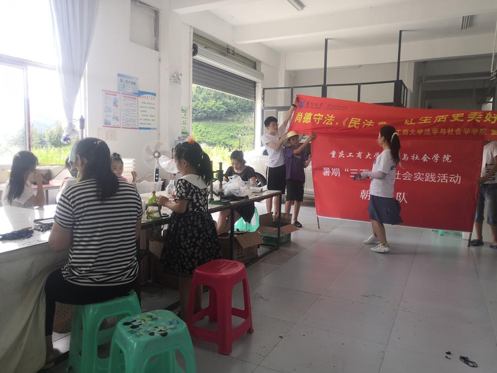 为深入了解当地政府面向全体村民提供就业机会,有针对性的从根源上解决贫困问题的行动,调研小组一行来到村里的“兴泸扶贫”产业基地——古蔺县畅兴玩具有限公司。玩具厂陈经理讲到,有不少村民把工作地点搬到了自己家中,只要家里有一台缝纫机,村民们就可以在照顾家人的同时随时进行工作。精细易上手的玩具加工,可谓是真正的面向全体村民,从6岁到65岁都有了可以自己挣生活费的机会。大学生志愿者们在调研的同时,也为厂里的员工带去了自制的《民法典》宣传册,现场为玩具公司员工带去了一堂生动的《民法典》宣讲课。
