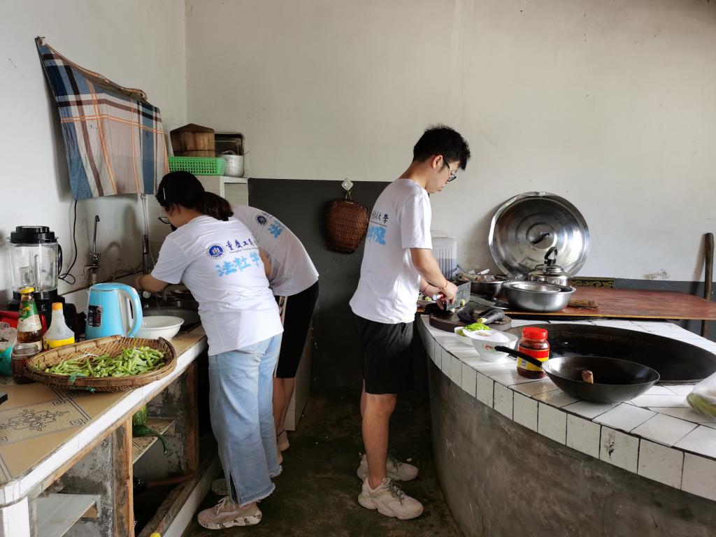图为社会工作专业的大学生志愿者深入建卡贫困的孤寡老人家中进行帮厨。