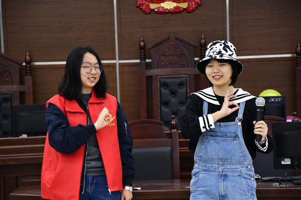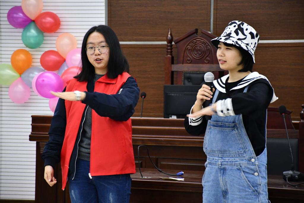 2020年11月21日9:00-11:00,太阳成tyc234cc“律荫社工”义工志愿者协会于太阳集团tyc234cc南岸校区慧智楼模拟法庭90426举办了以“大爱无声,手语传情”为主题的志愿服务活动。