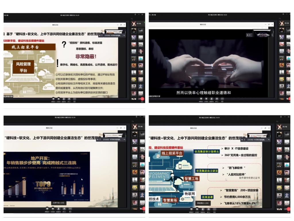 讲座在对世茂集团进行简单介绍的基础上,着重介绍了世茂集团对于企业廉洁生态的探索——“硬科技+软文化”。首先,利用大数据、物联网和人脸风控技术连接线上招采平台、智慧工地、智慧案场来建设科技反腐硬件基础;其次,介绍了世茂集团内部廉洁建设措施,如集团针对各部门的犯罪行为进行了强力打击,掀起了一场卓有成效的反贪风暴;最后,介绍了业内创新的IABP计划。