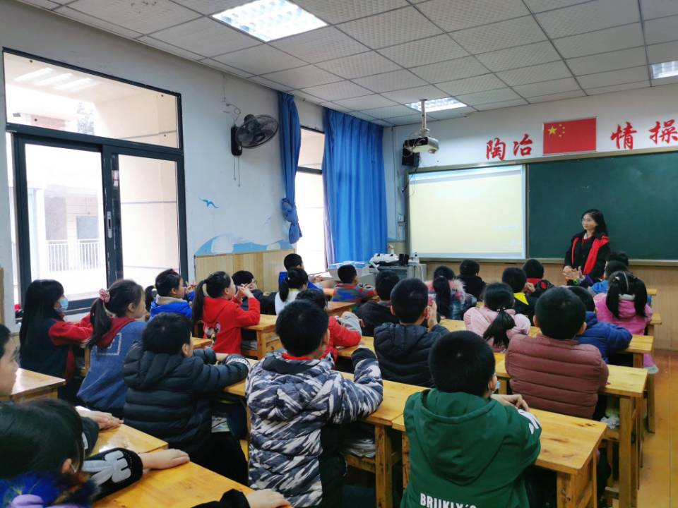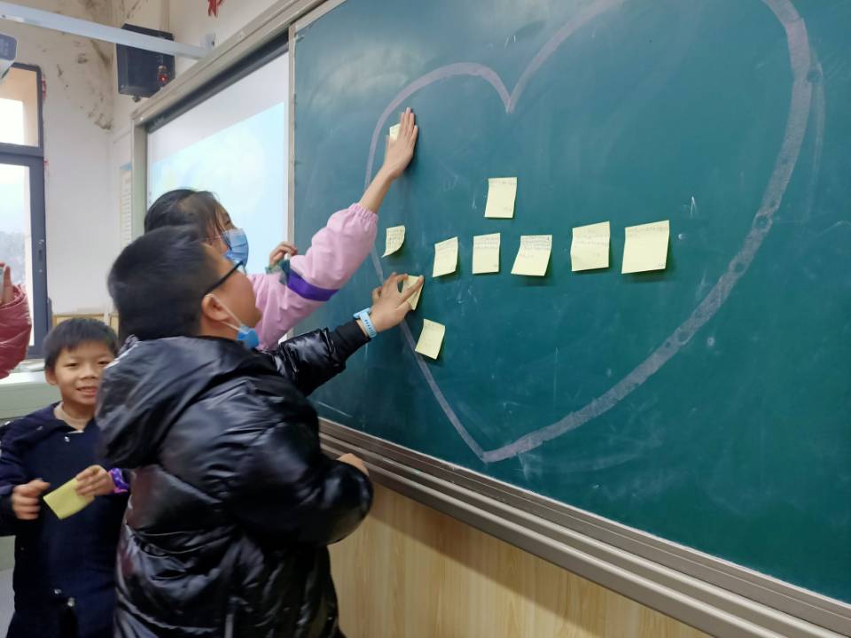 志愿者们与老师沟通并确认相关情况后,将参与活动人员进行分组开展活动。志愿者们通过PPT向四年级的学生们讲授抗疫相关的必备知识以及法律知识,包括抗疫方法、新冠病毒的危害、七步洗手法、购买假口罩应该如何维护自己的权益等等,进一步提升了同学们的防疫意识和维权意识。严肃的普法活动后,志愿者们与同学们一齐歌唱“国家”。志愿者们还鼓励同学们书写下自己的听课感想,同学们十分积极地参与其中。美好的时光总是短暂的,此次活动也在大家的合照中完美落幕。