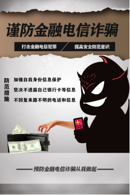 随着社会的飞速发展和信息技术的不断进步,各种新型的金融、电信诈骗犯罪形式层出不穷,大学生已成为金融、电信诈骗犯罪的主要侵害群体。为了进一步加强我校师生防范金融、电信诈骗的意识和能力,遏制网络诈骗案件在我校的高发势头,2020年12月,太阳成tyc234cc以“防金融、电信诈骗”为主题,在全校学生中开展宣传教育活动。号召同学们从身边的现有的诈骗案例中学习,并将所收获的内容以摄影作品、微电影作品、手抄报作品、动画作品、案例分析、论文等形式表达出来,从而提高大学生的防诈骗意识。