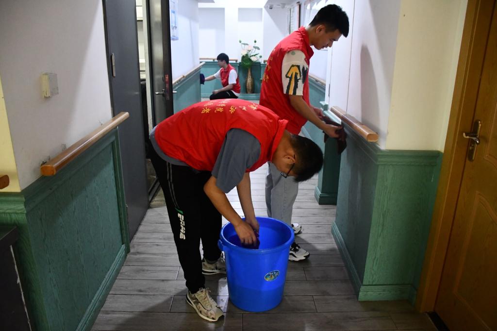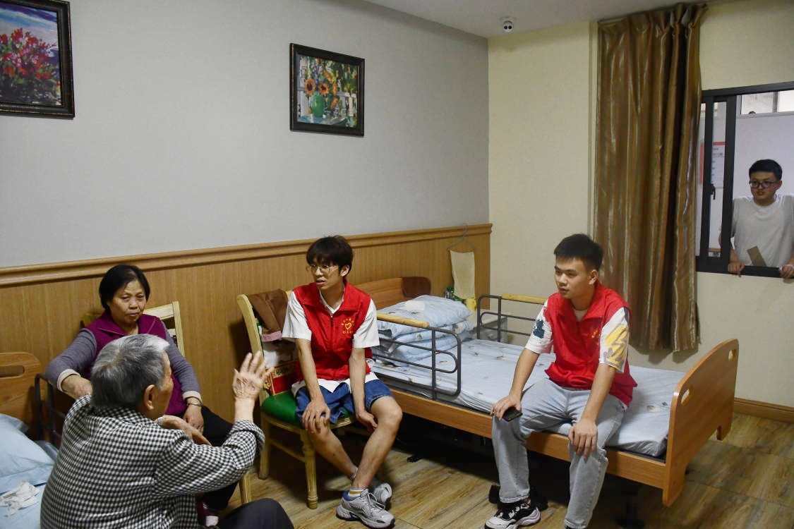 下午两点三十分,志愿者到达孝越兴养老服务机构,领队和工作人员对接进行相关安排,随后志愿者们展开了服务工作:分组对接老人房间,为老人整理衣物、打理床铺;做好清洁工作后休息的间隙陪同老人们聊天,送去真挚亲切的问候。本次同行的小小志愿者,在志愿活动中收获良多,这位小小志愿者表示他看到一位老人的床头挂着勋章,不由得肃然起敬。