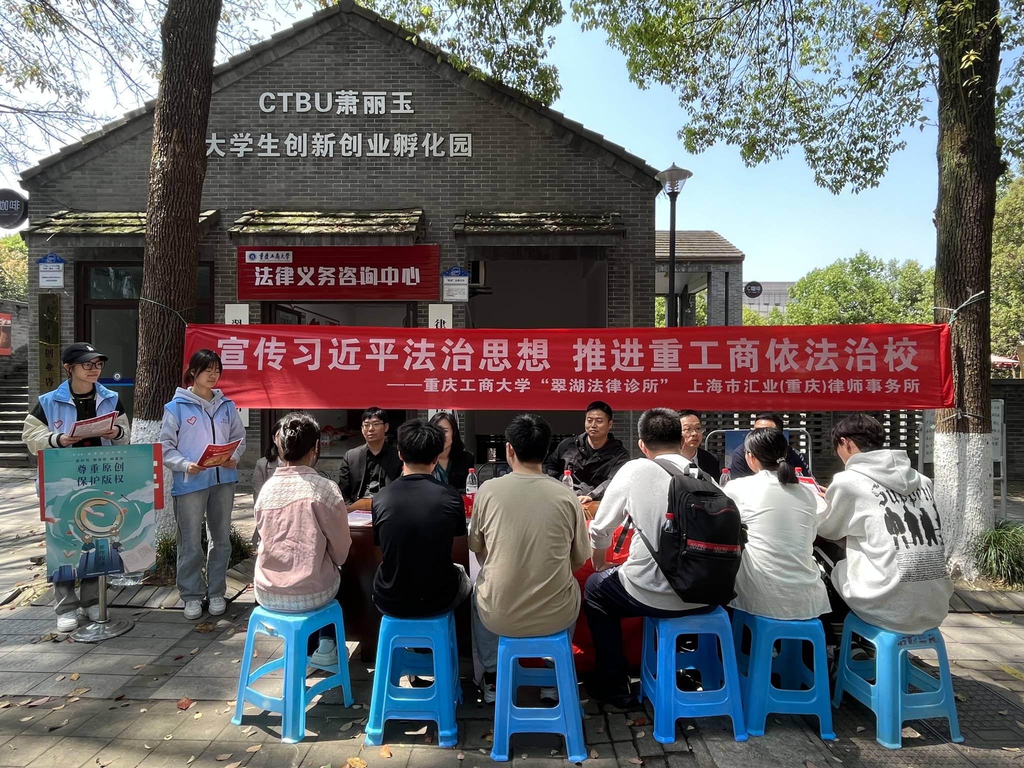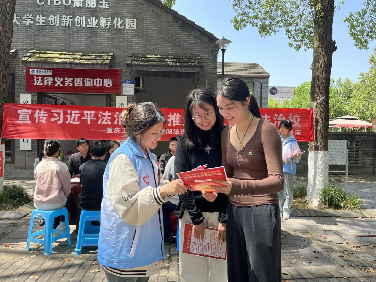 青年普法志愿者积极向校内师生宣传习近平法治思想,为师生讲解消费权益维护、知识产权保护等相关法律知识。来自上海市汇业(重庆)律师事务所的3名校友律师与法学专业教师为前来咨询法律问题的同学们答疑解惑。翠湖法律诊所负责老师张忠民表示,学校法律服务专家团队及青年普法志愿者将一如既往地坚持以习近平法治思想为指导,积极服务学校师生,为推动依法治校、建设社会主义法治国家贡献力量。