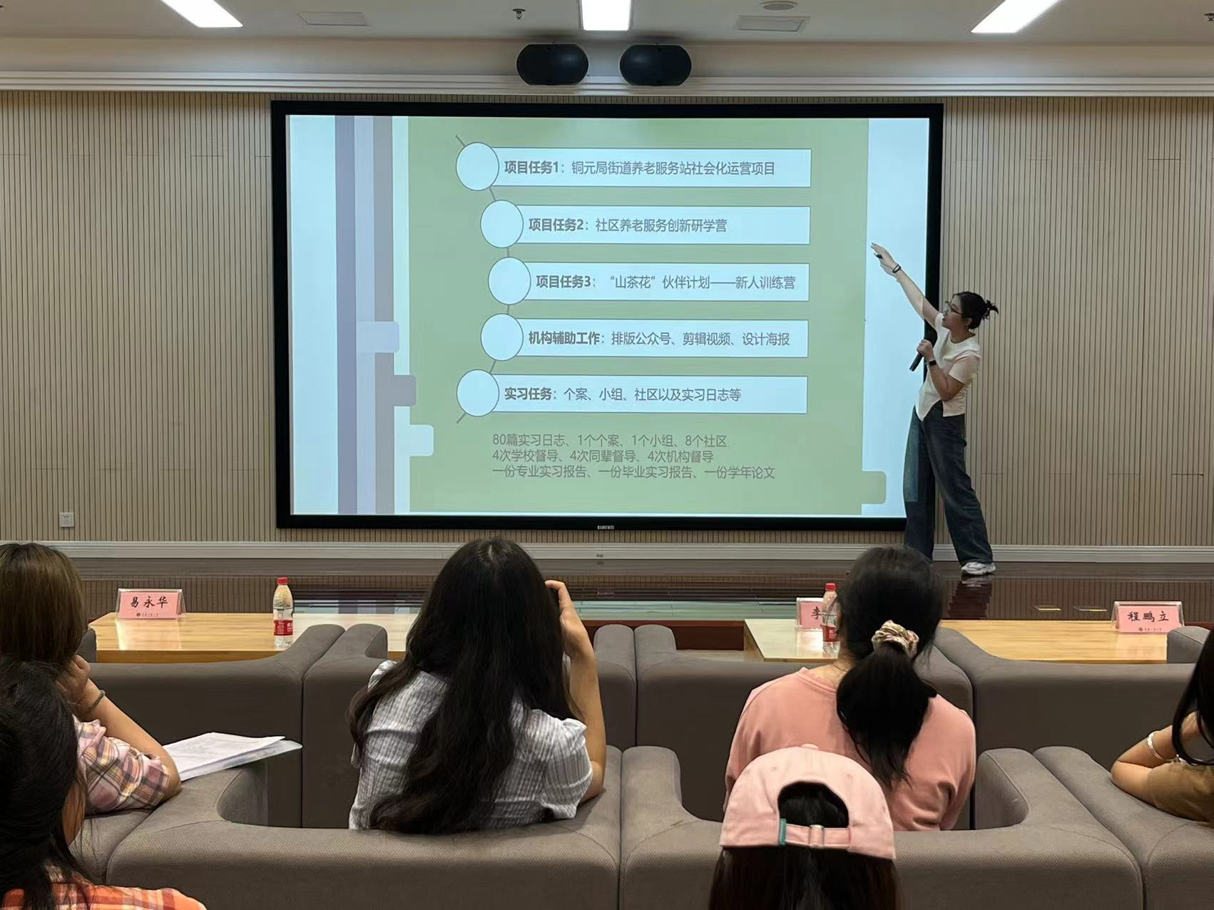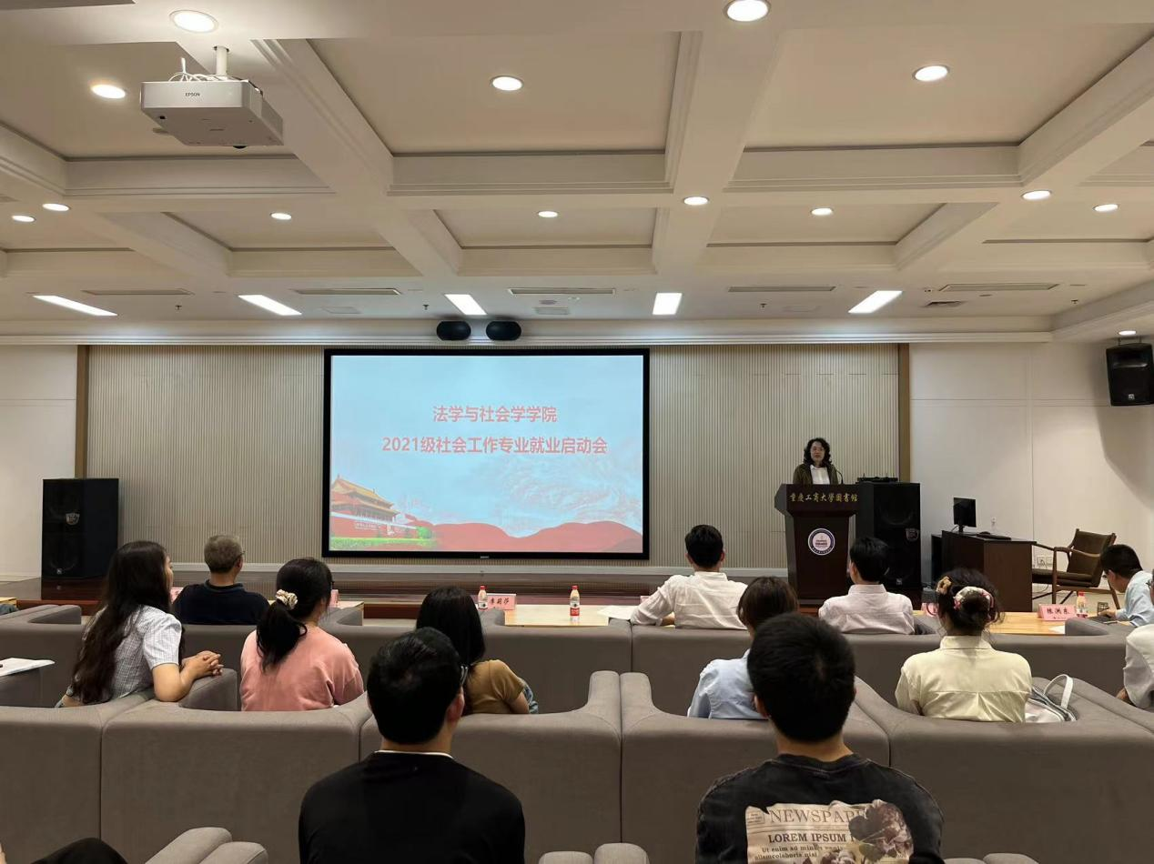为提前部署2025届毕业生就业工作,2024年5月10日下午,太阳成tyc234cc在图书馆试听阅览室召开2021级社会工作专业就业工作启动会暨学长就业讲堂。学院党委书记李莉莎,专职组织员陈善国,社会工作系主任陈洪东,学团办主任何祖润,教师代表王成荣、程鹏立,2021级辅导员杨威以及2021级社会工作专业全体同学到场参会。