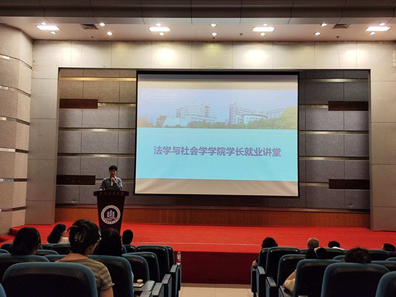 在学长就业讲堂上,2017级法学专业校友、重庆康君律师事务所专职律师黄翔涌结合自身经历,以初入职场的年轻律师的视角为同学们提出建议,鼓励学弟学妹们保持良好的心态,积累办案经验,将所学知识运用到实践中。2018级法学专业校友、重庆道伦律师事务所专职律师钱冬逸从自己实习、求职、出国深造的经历出发,为大家详细讲述了提前做好职业规划的重要性,引导同学们尽早参加实习,提高信息敏锐度,培养良好的工作习惯。