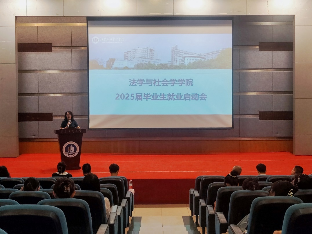 在2025届毕业生就业启动会上,李莉莎代表学院作就业动员,从国家和家庭两个层面强调了就业工作的重要意义。其次,她对同学们提出几点希望,一是希望同学们树立正确就业观念和就业目标,脚踏实地找到适合自己的岗位,先就业、后择业;二是希望同学们把毕业实习和就业实习紧密结合,通过高质量实习提升就业技能;三是希望同学们立足实际树立契合实际的备考目标。最后,李莉莎通报了我院2024届毕业生的法考、考研、考公情况。