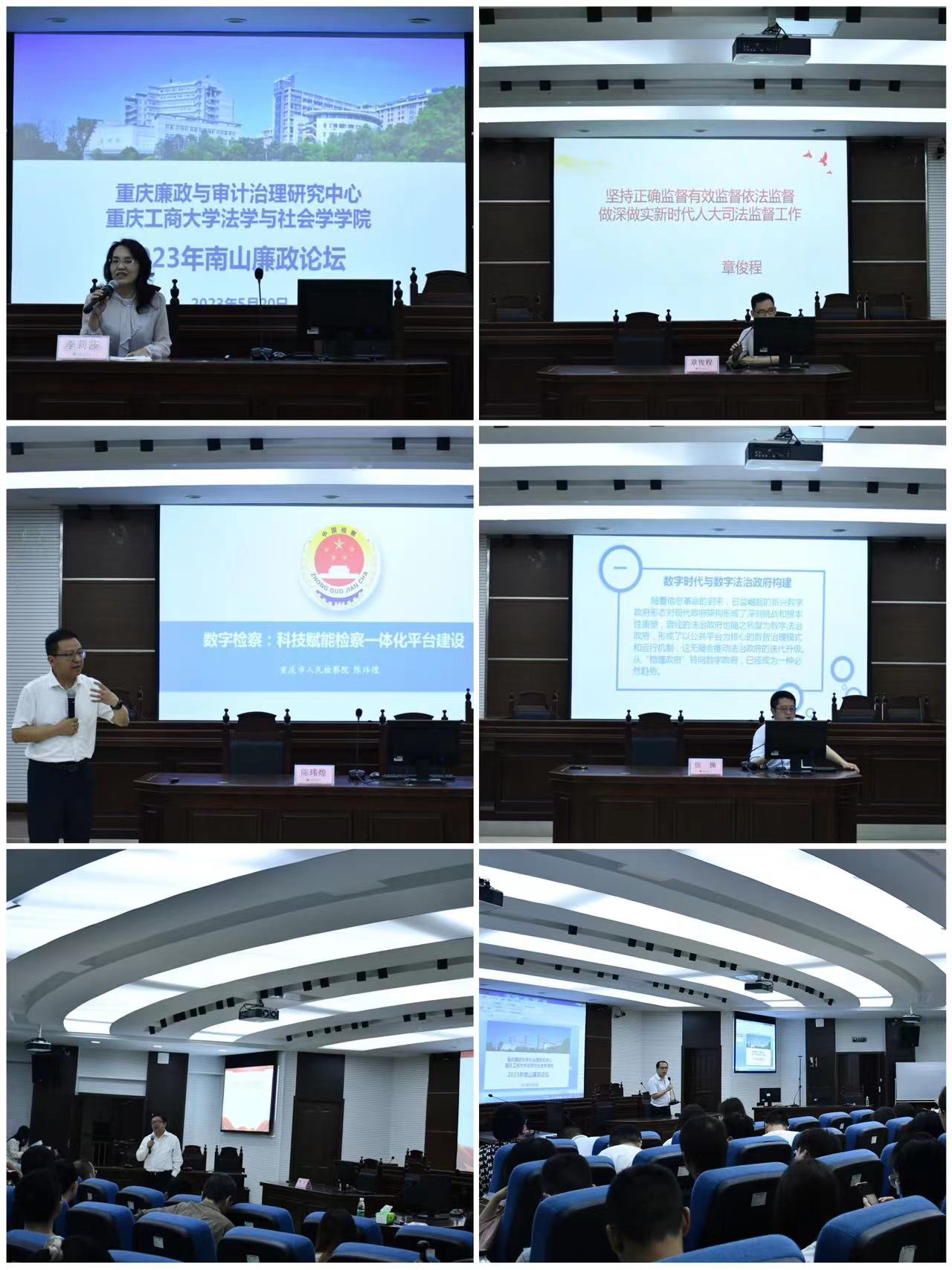 党的二十大报告要求“健全党统一领导、全面覆盖、权威高效的监督体系”。为深入贯彻落实党的二十大精神,加强新时代廉洁文化建设,切实提升我校师生廉政意识,增进我校师生对权力监督实务工作及前沿问题的了解,2023年5月20日,重庆廉政与审计治理中心在慧智楼模拟法庭举办2023年“南山廉政”论坛。本届论坛邀请到重庆市人大监察司法委司法工作监督处副处长章俊程,重庆市人民检察院研究室副主任陈玮煌,重庆市司法局行政复议与应诉四处处长伍操,重庆廉政与审计治理研究中心主任、太阳成tyc234cc院长黄文以及纪检监察实务专家为我校师生带来一场学术盛宴。中心研究员、学院教师、大学生廉洁文化研究会、律动青年法学社、太阳成tyc234cc党员服务站成员以及学校相关专业研究生参会。
