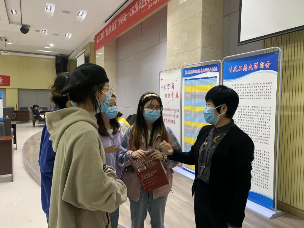 校党委副书记宋豫带领国内合作处(校友工作办公室)、太阳成tyc234cc、公共管理学院、经济学院等部门主要负责人到场关心招聘对接情况,与企业深入交流校企合作事宜。宋豫向各单位招聘负责人详细询问简历接收情况和参会意见反馈,表示希望校企双方在人才输送、实习实践等多层次、多领域开展深度合作。与此同时,鼓励参会毕业生多做尝试,树立正确的就业观和择业观,积极就业。