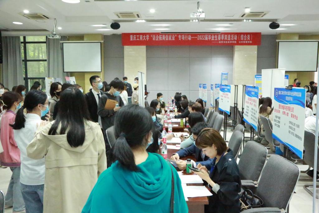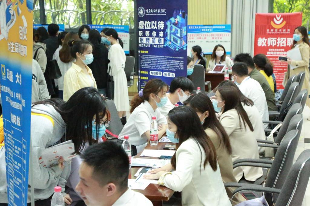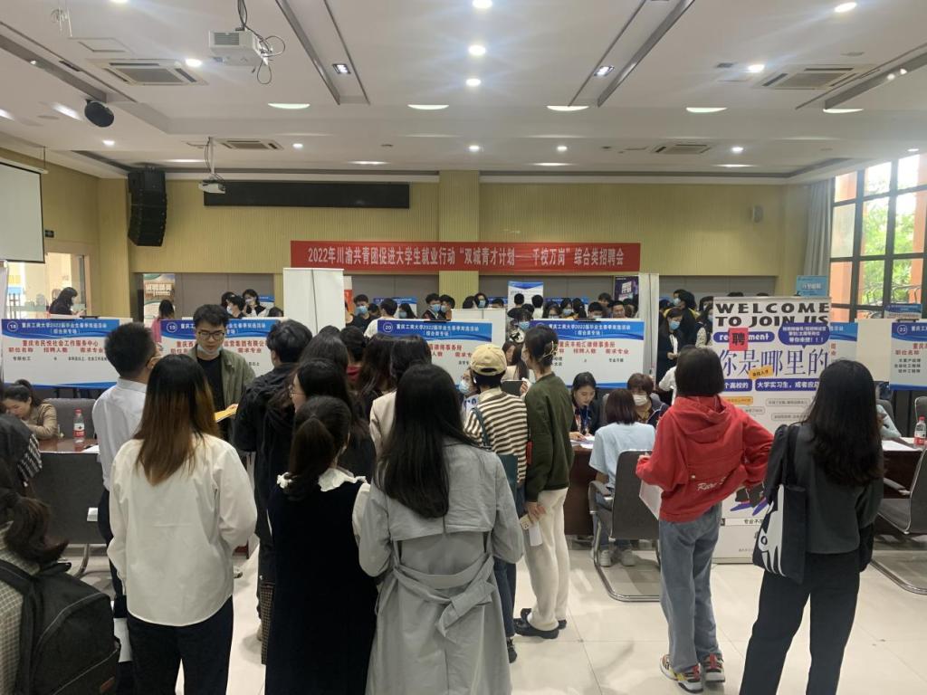 为深化实施“访企拓岗促就业”专项行动,全力做好学校2022届毕业生就业工作,5月19日下午,由重庆市教委、重庆市人力社保局、共青团重庆市委、四川团省委联合主办,招生就业处、校团委承办,法学与社会学学、公共管理学院协办的2022届毕业生春季双选活动(综合类)暨“双城青才计划——千校万岗”专场招聘会如期举办。