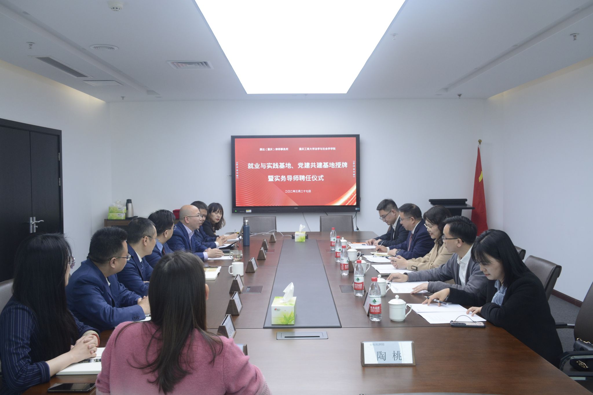 为深化校企合作,拓展就业岗位,3月27日,学院走访了北京市康达(重庆)律师事务所并签订合作协议,学院党委书记李莉莎、院长黄文、副院长刘勇、法学系主任公杰、综合办主任黄倩参加了本次活动。