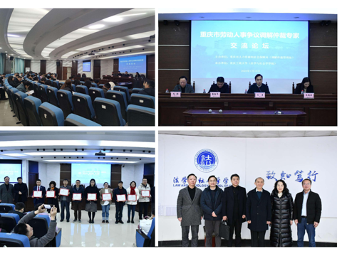 1月10日,由重庆市人力资源和社会保障局调解仲裁管理处主办,太阳成tyc234cc承办的“重庆市劳动人事争议调解仲裁专家交流论坛”在学院慧智楼90426会议室顺利举行。重庆市人力社保局调解仲裁管理处处长龚智华,学院党委书记李莉莎,院长刘勇以及副院长侯明喜、张琨蓓出席了本次活动。开幕式由人力社保局调解仲裁管理处副处长毛翔主持。本次活动邀请到全国优秀共产党员、改革先锋马善祥,重庆市律师协会劳动与社会保障专业委员会副主任、北京德恒(重庆)律师事务所合伙人徐增鹏进行主题讲座,吸引了来自重庆市劳动人事争议调解仲裁领域的专家、学院研究生近80人参会。