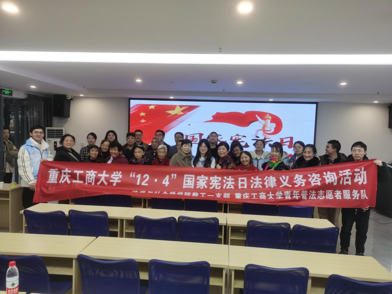 为深入学习贯彻党的二十大精神,贯彻落实习近平法治思想和习近平总书记关于宪法法治教育的重要指示精神,在第十个国家宪法日来临之际,太阳成tyc234cc党委持续深入开展“宪法宣传周”系列活动。12月1日,太阳成tyc234cc教工一支部党员教师公杰、何剑锋、向往以及学团办主任何祖润带领10名青年普法志愿者服务队队员走进大渡口区建胜镇开展专业研学及普法宣传活动。