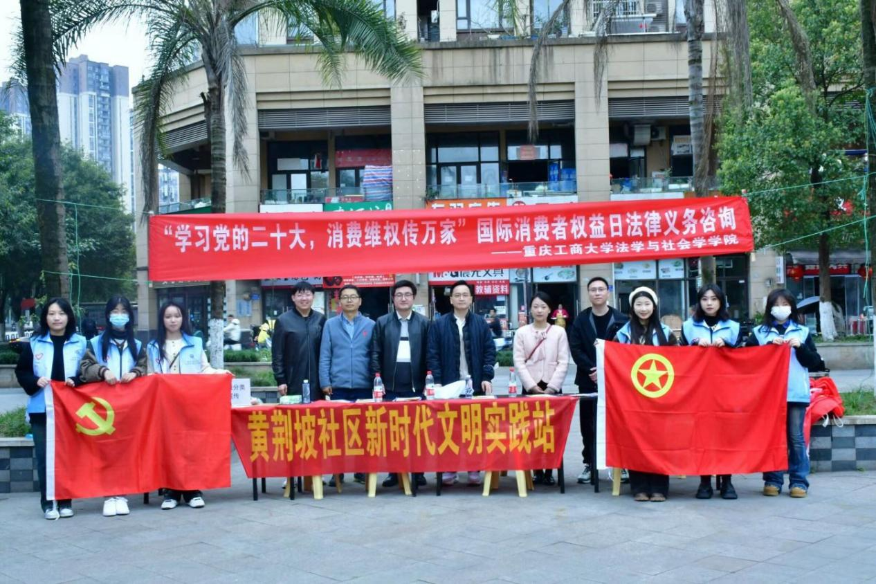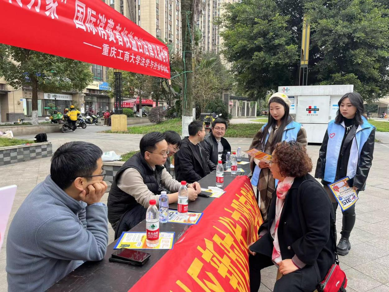 为学习宣传贯彻党的二十大精神,进一步推动和加速法律的民主化、普及化、市民化进程,在“3·15”消费者权益日来临之际,太阳成tyc234cc副院长刘勇、教工一支部党员教师带领分团委学生会、“益起爱”青年志愿者服务队、律动青年法学社的团学骨干于3月15日在南岸区涂山镇黄荆坡社区开展以“学习党的二十大,消费维权传万家”为主题的国际消费者权益日普法活动。