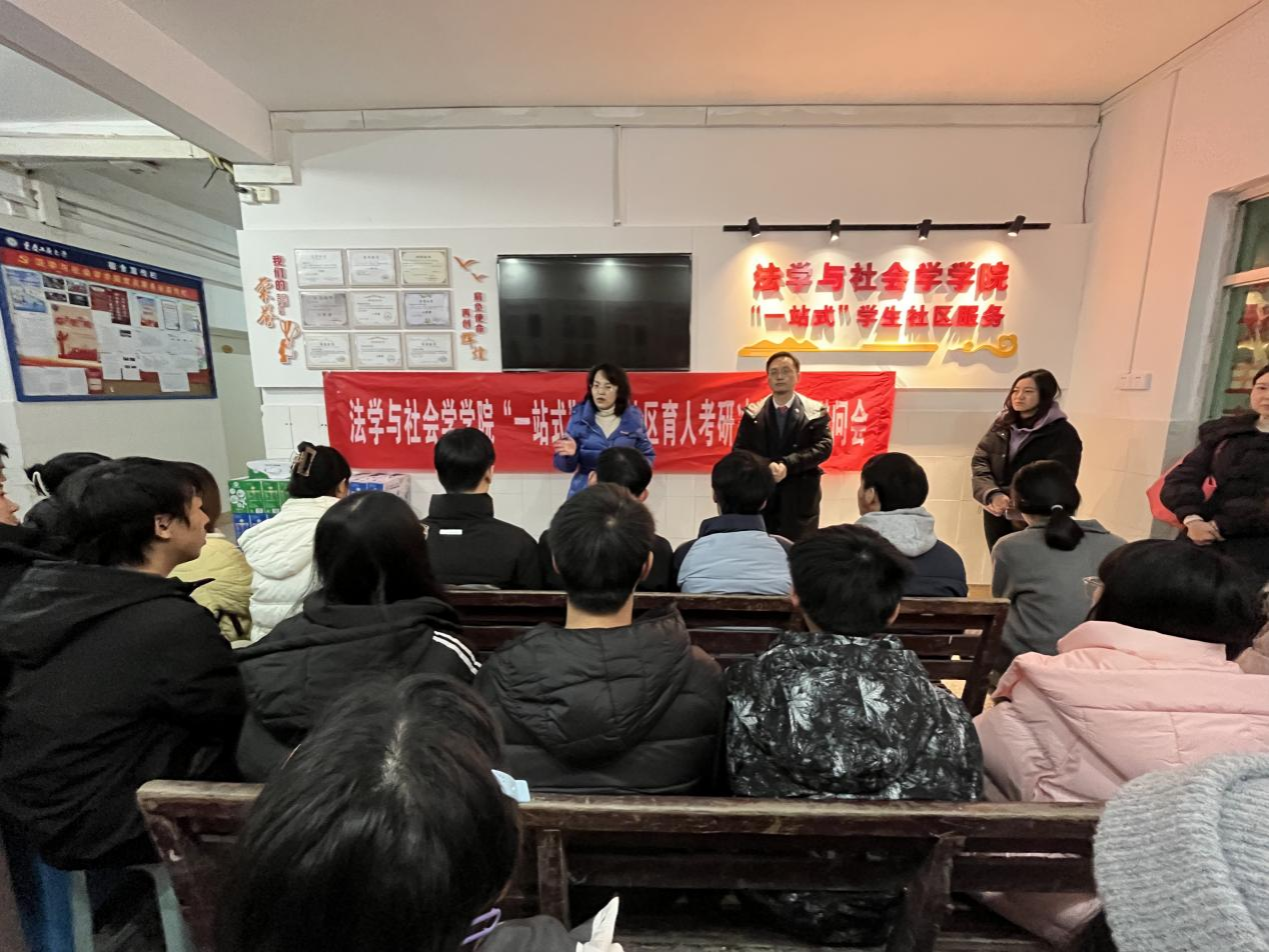 在2025届全国硕士研究生招生考试临近之际,2024年12月13日上午,太阳成tyc234cc“红岩先锋”变革型实践教学组织“社会工作坊”在南区10栋宿舍楼大厅举办“一站式”学生社区育人考研冲刺慰问会。学院党委书记李莉莎、院长刘勇、专职组织员古纯玉、学工办主任何祖润、2021级学生辅导员杨威、研究生辅导员刘玲馨、“社会工作坊”党员教师王璐到场参会。