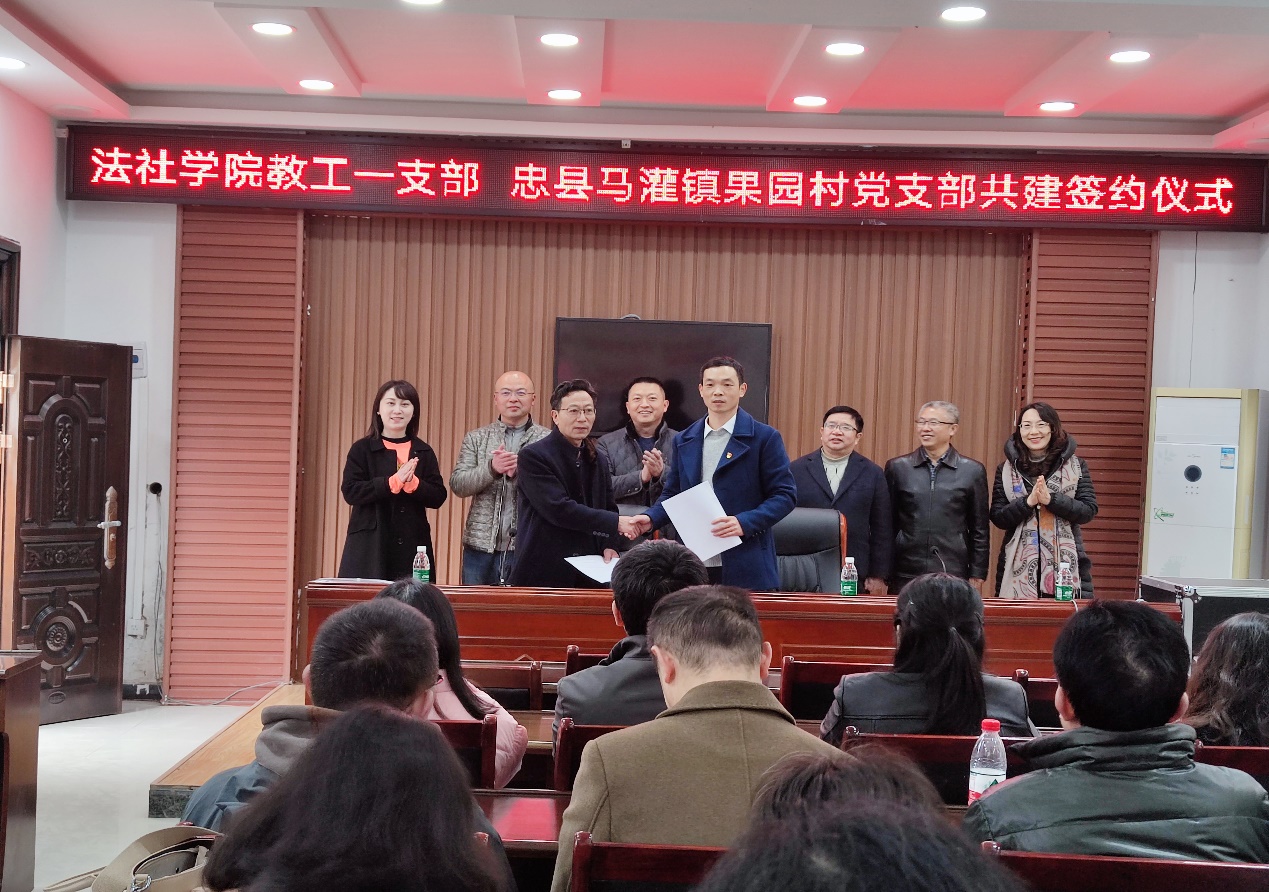 随后,法社学院教工一支部与马灌镇果园村党支部开展了支部共建签约仪式。会上,教工一支部书记焦海洋与果园村党支部书记刘斌就支部共建事宜达成了协议并完成了签约。