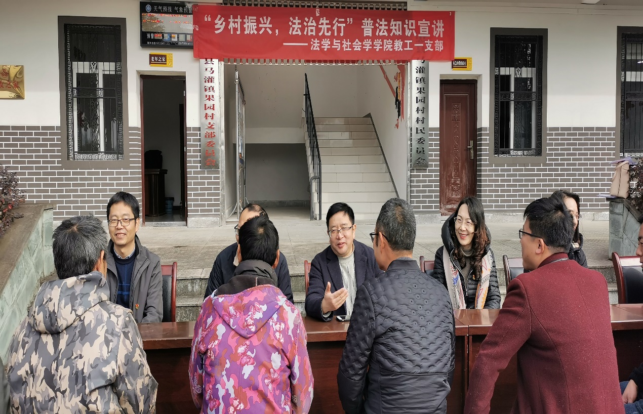 11月27日,学院教工一支部法学、知识产权专业的党员教师为果园村的村民开展了“乡村振兴 法治先行”普法知识宣讲与咨询活动,围绕土地承包、外出务工、遗产继承、婚姻关系等与村民生活息息相关的内容,提供了解决矛盾的法律建议。同时,针对果园村开展电商直播销售过程中出现的法律纠纷,予以了专业的解答和援助。