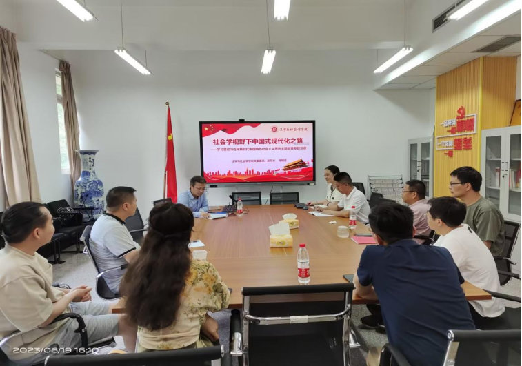 侯明喜副院长带领大家研读《习近平著作选读》中的《要有高度的文化自信》《走中国特色社会主义乡村振兴道路》《坚持和完善中国特色社会主义制度、推进国家治理体系和治理能力现代化》等篇目,做到读原著、学原文、悟原理。同时,侯院长系统梳理近期社会学领域关于“中国式现代化”的相关研究成果,分别从中国式现代化的重要内容、中国式现代化的主要特征、中国式现代化面临的重要任务、中国式现代化的未来发展等方面,分析社会学视野下中国式现代化之路。