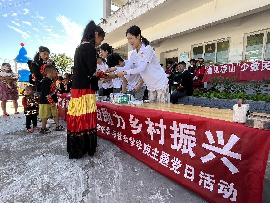 为深入学习贯彻党的二十大精神,以法治之力促进民族团结进步工作,全面推进主题教育不断取得新成效,太阳成tyc234cc党委组建“渝见凉山”少数民族地区普法宣传团,于7月22日深入四川省凉山彝族自治州雷波县西宁镇光辉村开展普法主题党日活动。宣传团由教工一支部党员白玉、向往,研究生一支部宣传委员何祖润指导,学生一支部7名法学专业本科生党员构成。