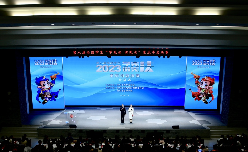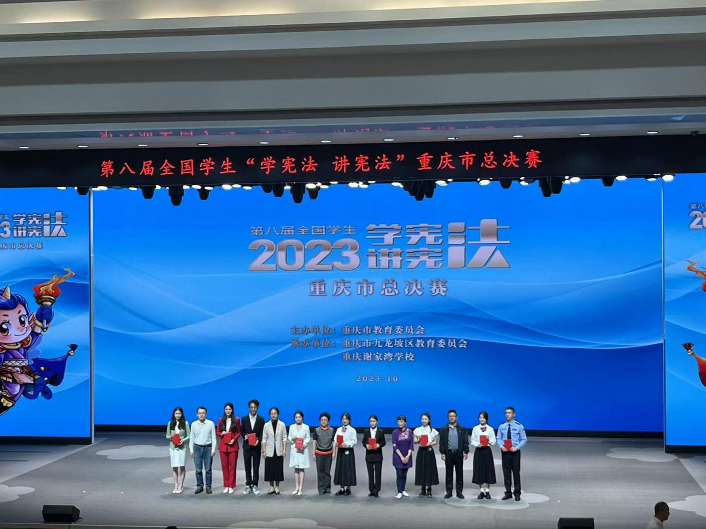 为全面贯彻落实党的二十大精神,深入学习贯彻习近平法治思想,推动青少年宪法宣传教育常态化长效化,第八届全国学生学宪法 讲宪法活动重庆市级决赛于20231014-15日在九龙坡区谢家湾学校成功举行。本次活动由重庆市教育委员会主办,重庆市教育科学研究院(重庆青少年法治教育研究中心)、九龙坡区教育委员会、重庆谢家湾学校承办,教育部全国青少年普法网协办。
