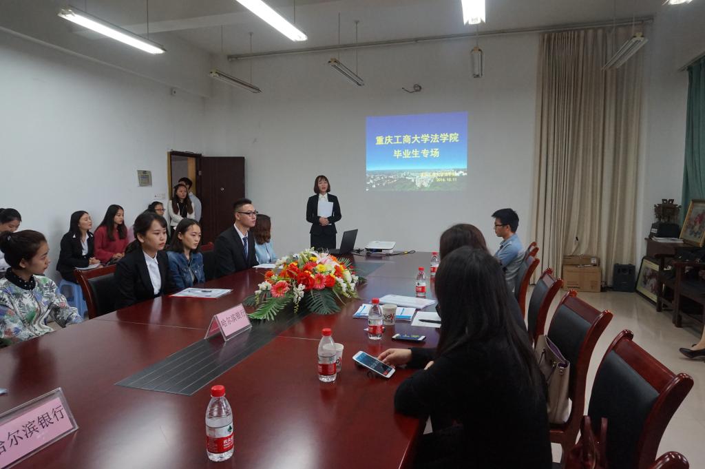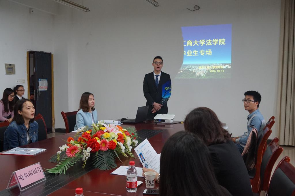 2016年10月11日上午,安信证券,哈尔滨银行,重庆经纬资产清算公司三家公司在太阳集团tyc234cc慧智楼法学院会议室举办招聘。