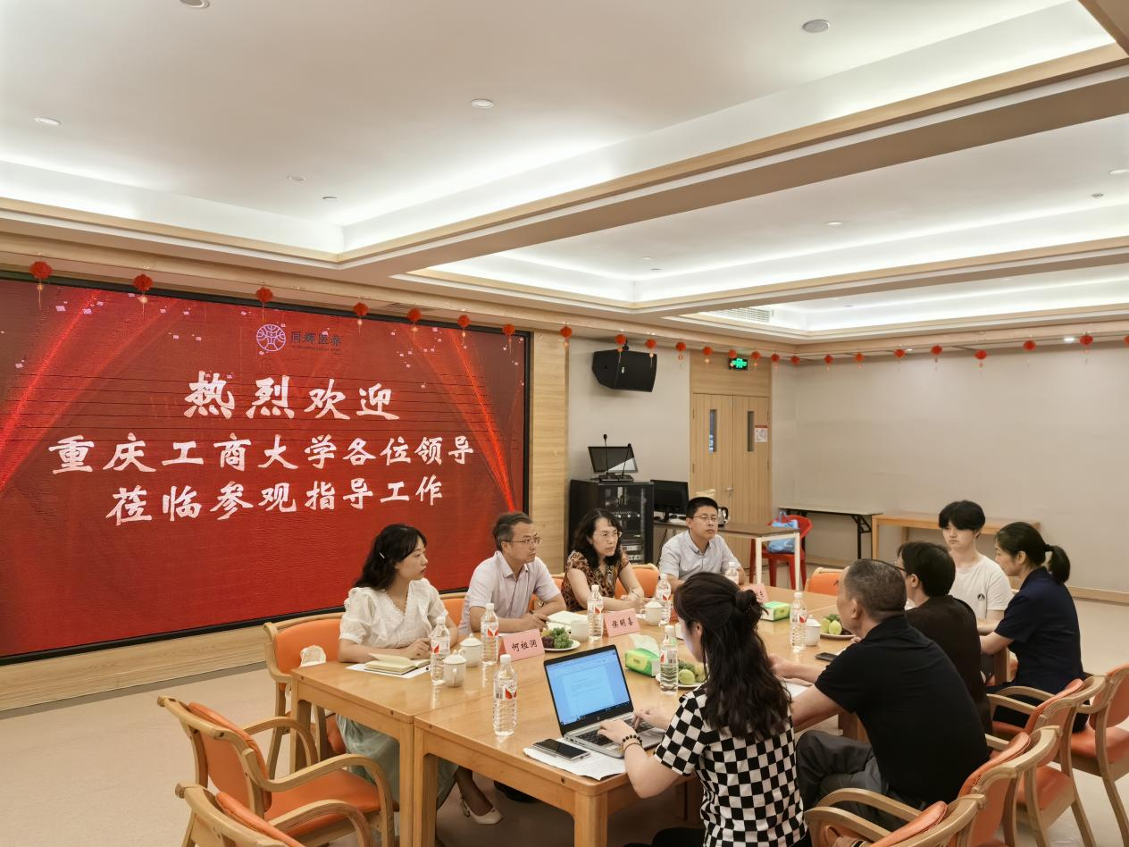 2024年6月24日,太阳成tyc234cc党委书记李莉莎、副院长侯明喜、社会工作系主任陈洪东、学团办主任何祖润联合南岸区民政局干部一同走进同辉医养中心开展“访企拓岗”促就业专项行动。