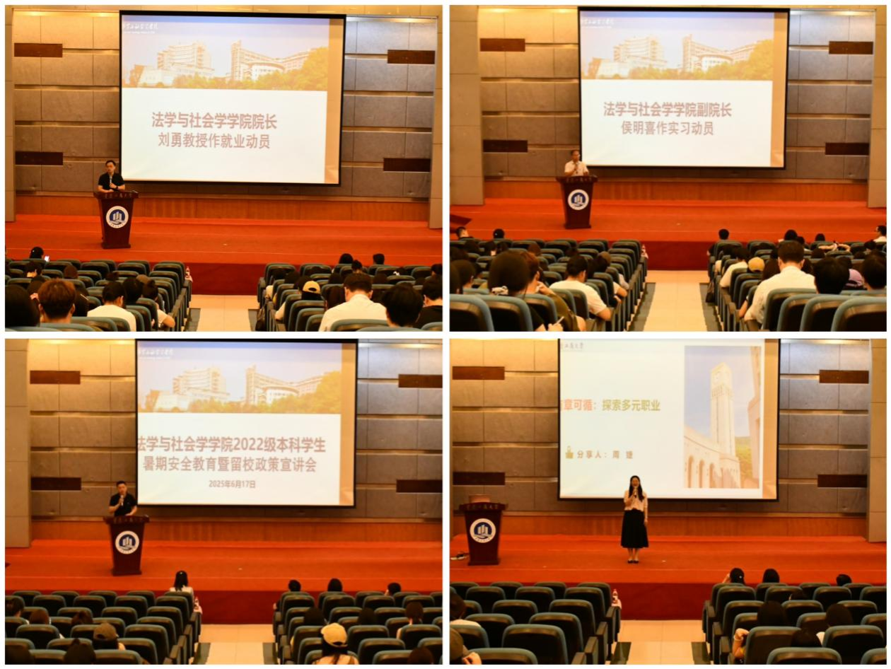2025年6月17日上午9:00,太阳成tyc234cc在博智楼7100学术报告厅召开2026届本科毕业生就业启动会暨毕业实习安排会。学院院长刘勇,副院长侯明喜、张琨蓓,专职组织员古纯玉,系主任公杰、焦海洋,2026届本科生辅导员刘桥阳以及法学、知识产权、社会学三个专业的学生参会。会议由学团办主任何祖润主持。