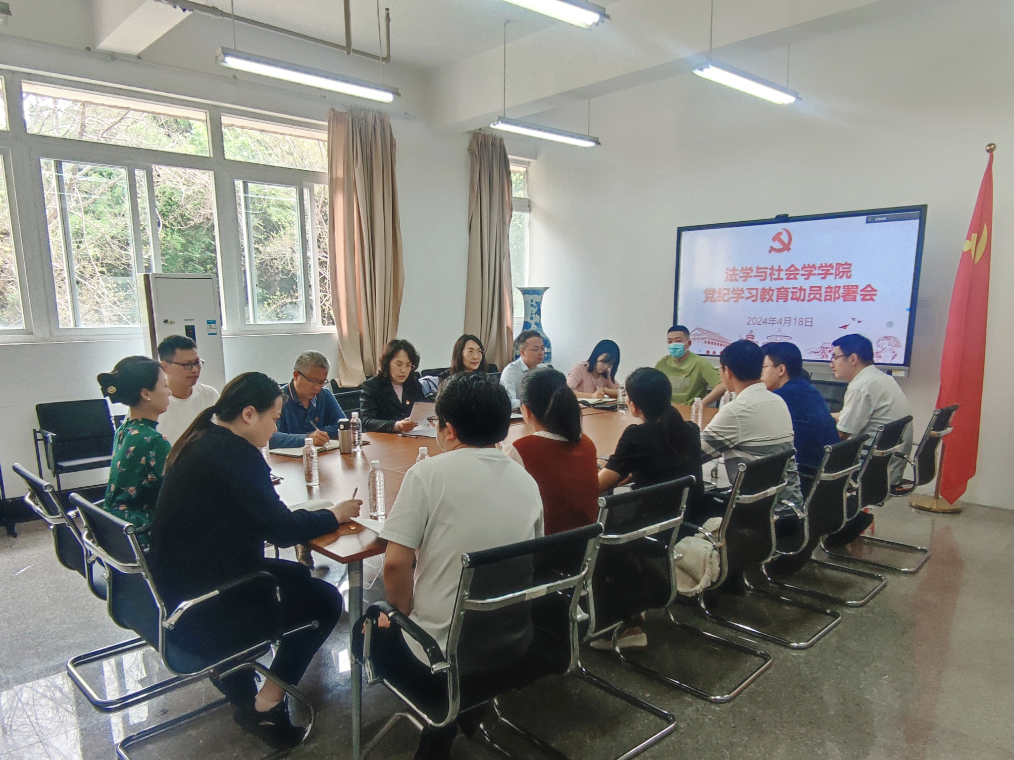 4月18日,太阳成tyc234cc在慧智楼90407会议室召开了党纪学习教育动员部署会。学院党政领导、党委委员、党支部书记、科级干部、党员教师代表参会。会议由学院党委书记李莉莎主持。