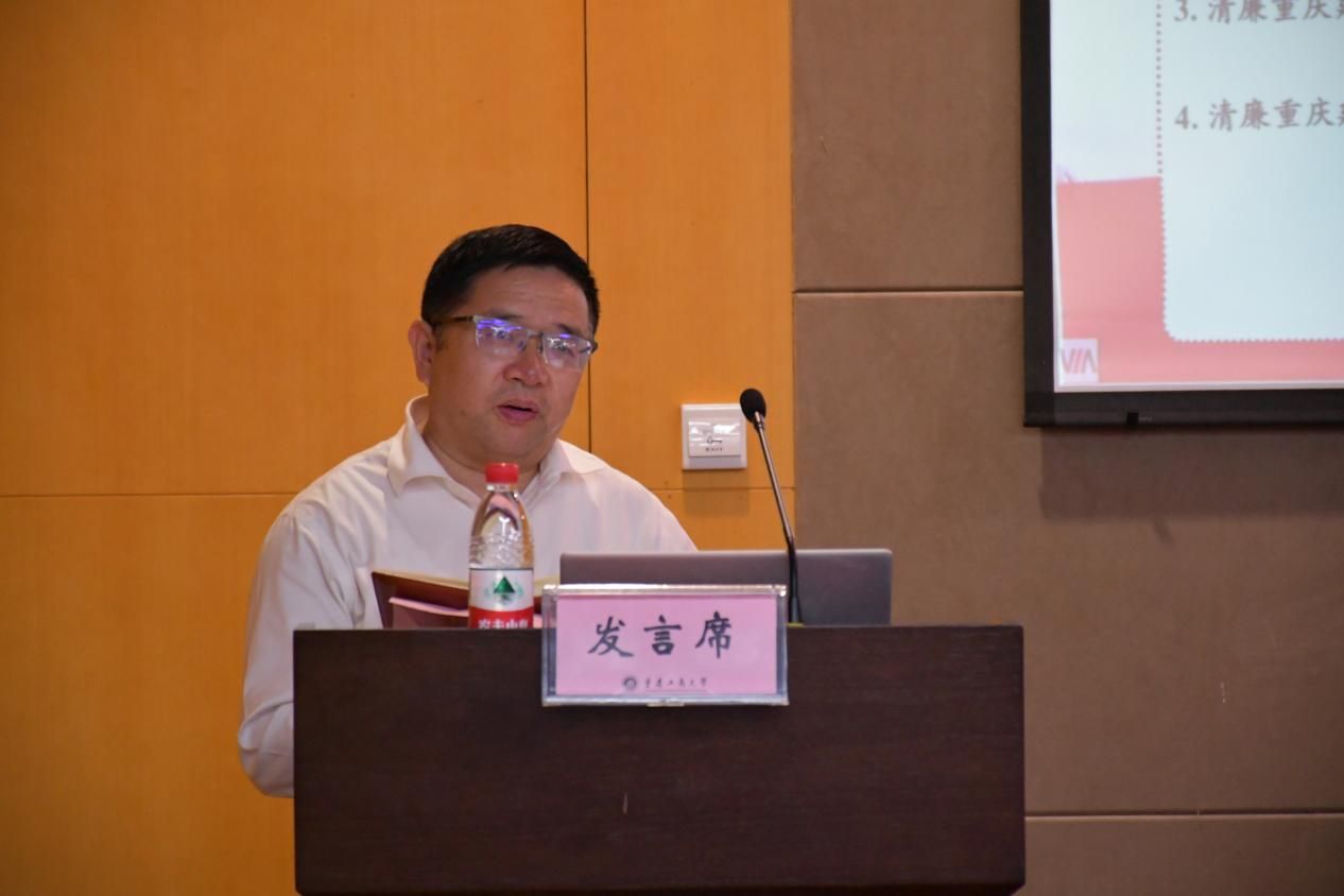 学校党委常委、纪委书记张海燕为论坛致开幕词。她指出,为深入贯彻落实习近平总书记关于全面从严治党的重要论述精神和党中央决策部署,学校全面启动清廉学校建设各项工作,形成了“1+10+X”建设体系,以理论研究推进清廉重庆建设走深走实。本次论坛围绕清廉重庆建设的提出背景与时代价值、内涵特征与理论逻辑、政策方略与具体实践、效果评价与问题检视、推进路径与对策建议等方面进行探讨交流,旨在整合党建、法律领域的专家智慧共同助力清廉重庆建设。